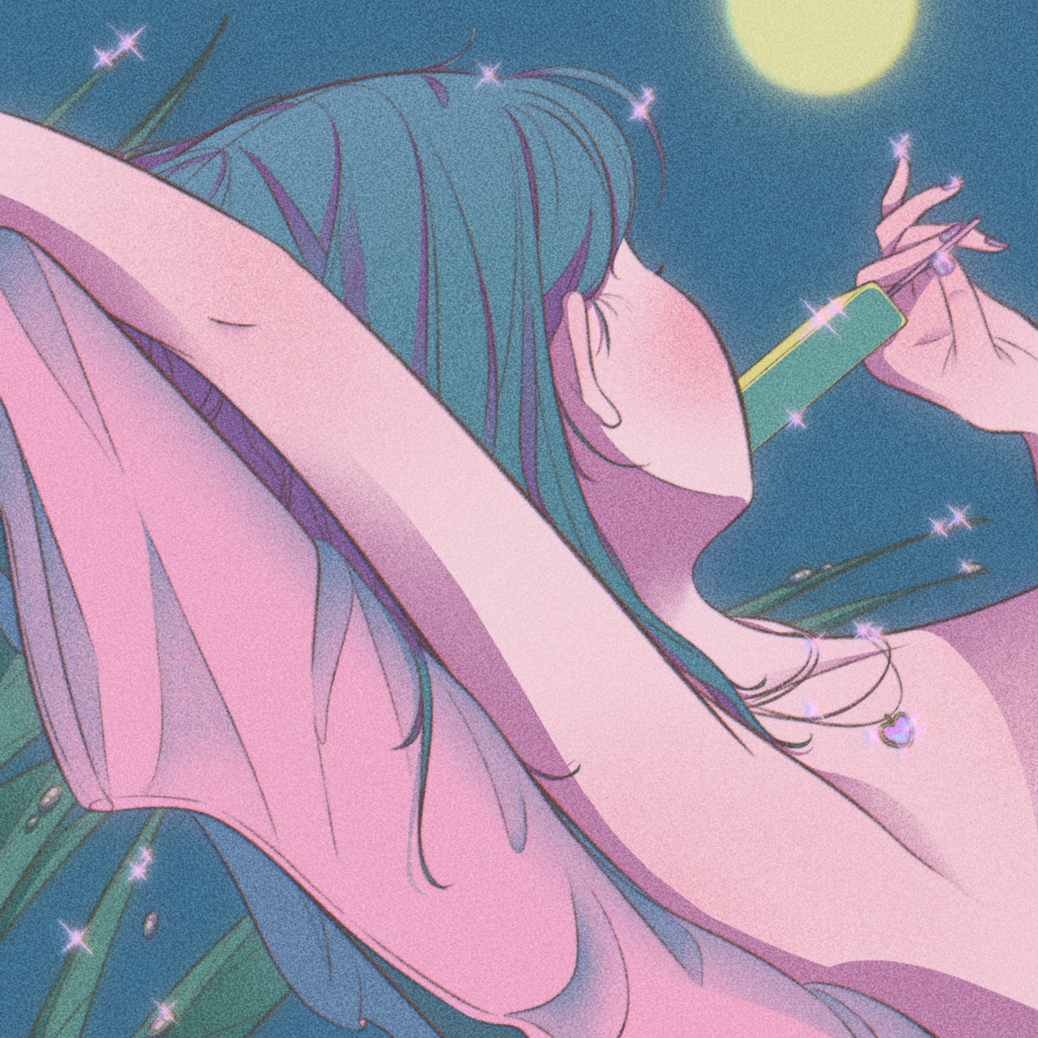 Safebooru - 1girl aqua hair armpits blush dew drop eating facing away food highr